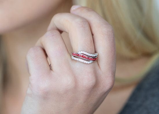 EverWith Ladies Oceans Memorial Ashes Ring with Fine Crystals Red