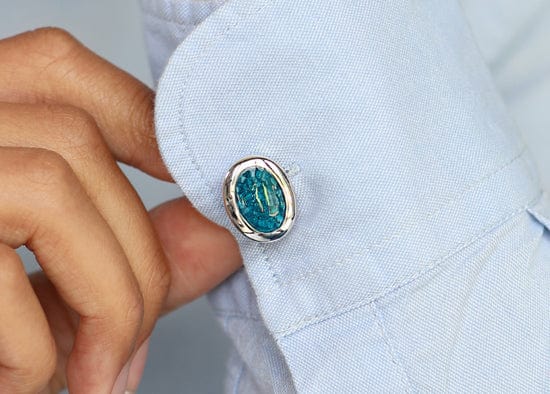 EverWith Gents Oval Memorial Ashes Cufflinks Aqua