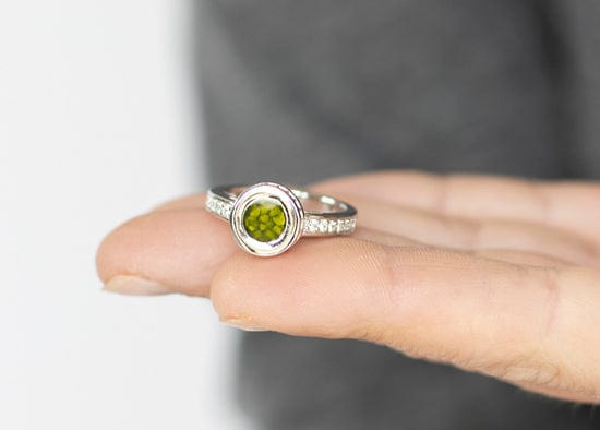 EverWith Ladies Round Halo Memorial Ashes Ring with Fine Crystals Green