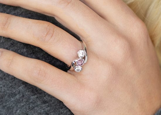 EverWith Ladies Three Of Us Memorial Ashes Ring with Fine Crystals Violet