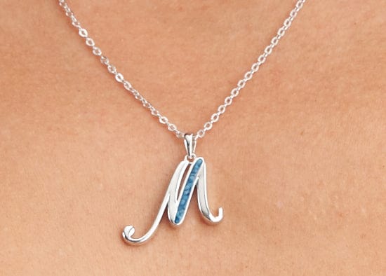 EverWith Alphabet Memorial Ashes Pendant - Letter M Aqua
