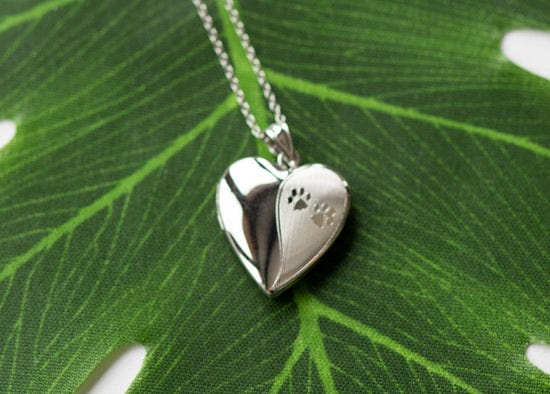EverWith Paw Print Heart Shaped Sterling Silver Memorial Ashes Locket