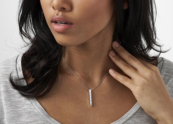 EverWith Engraved Long Bar Memorial Handwriting Pendant With Fine Crystal