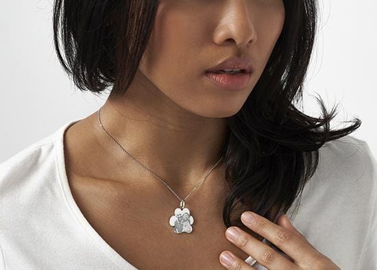 This “Pawprint” engravable memorial pendant can be discreetly engraved with a photo on the reverse. The photo can be uploaded or emailed, and the engraved image is easily recognisable. The necklace is crafted from hallmarked EverWith 925 Sterling Silver.